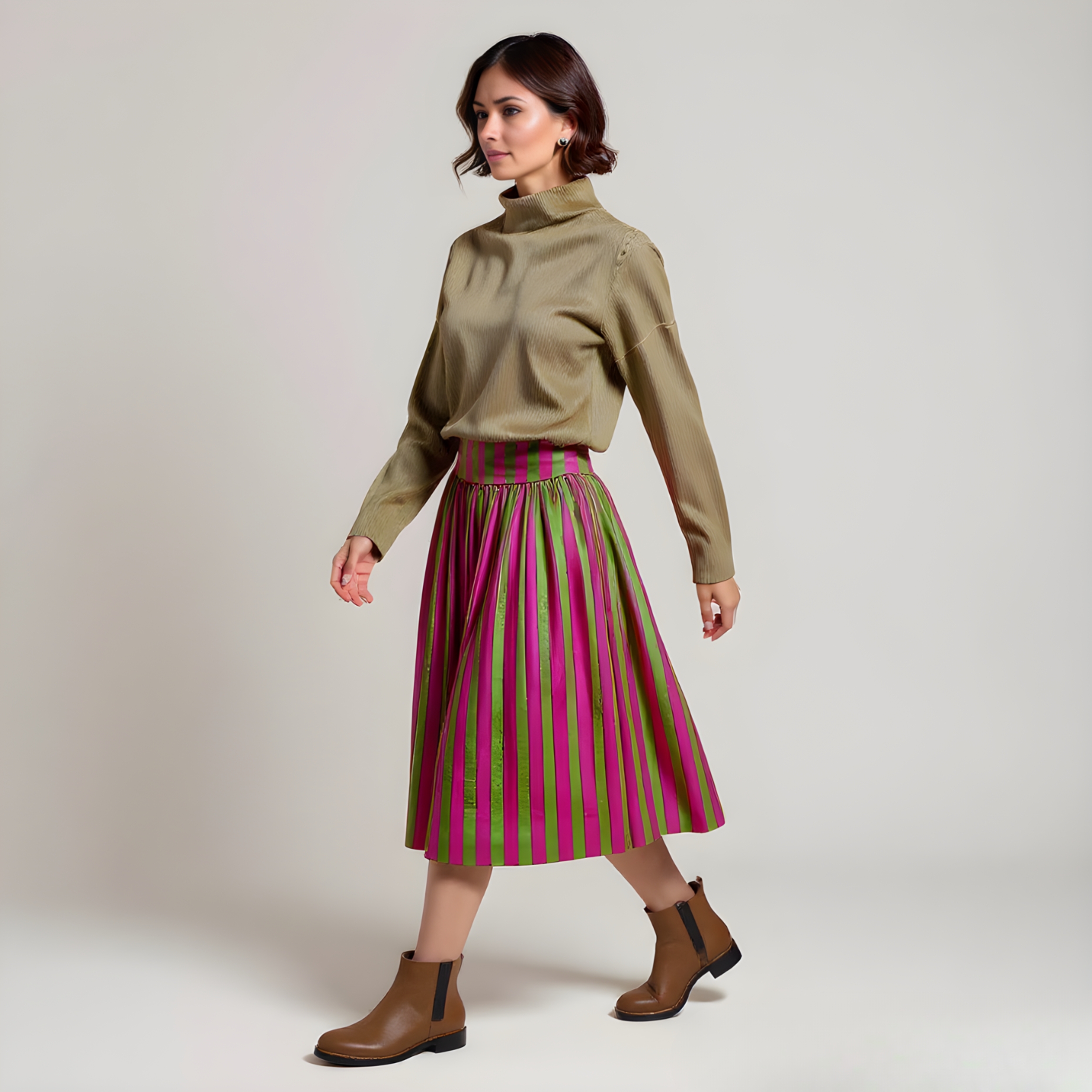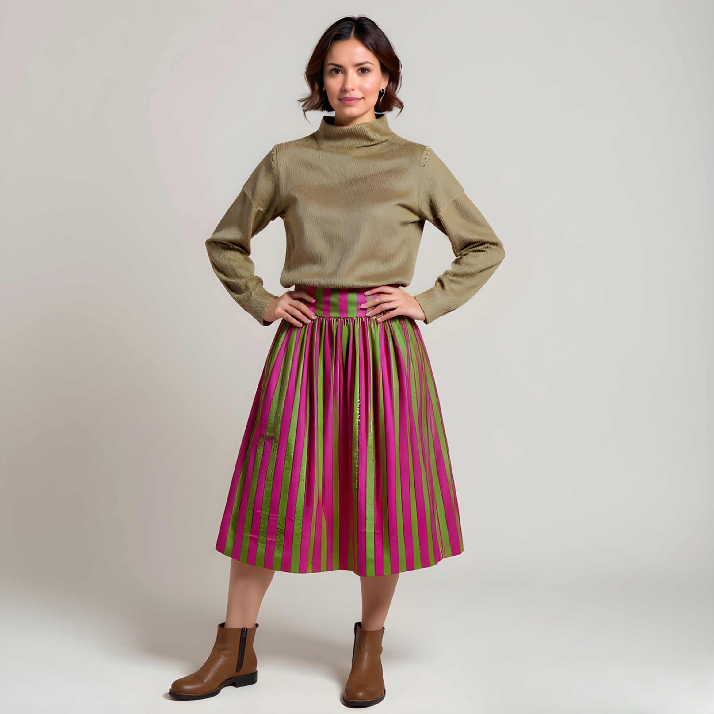 Nachhaltiger One Size Midi-Rock aus Bio-Baumwolle mit Streifenmuster – Verstellbar von XS bis L